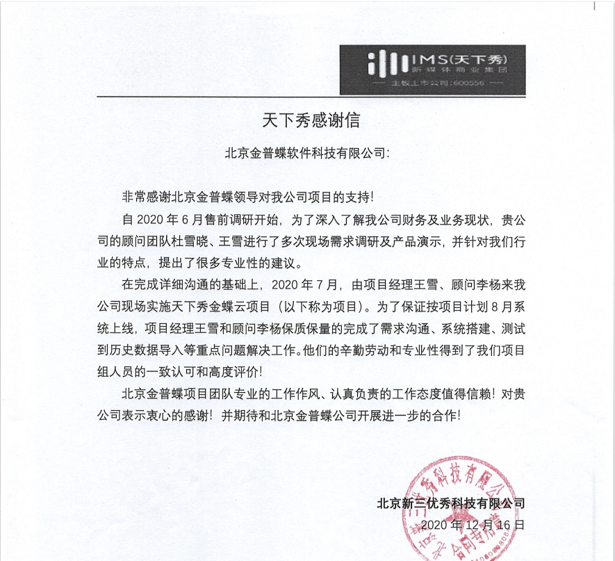天下秀數(shù)字科技(集團(tuán))股份有限公司感謝信