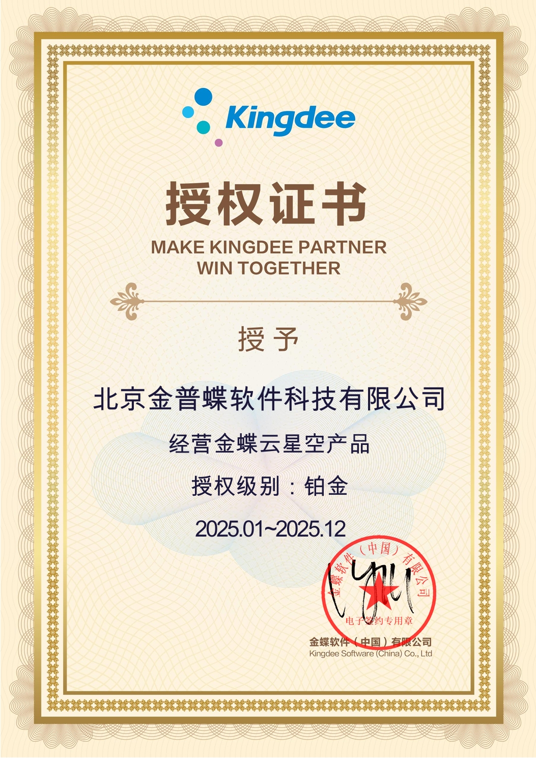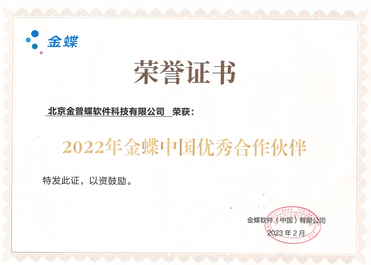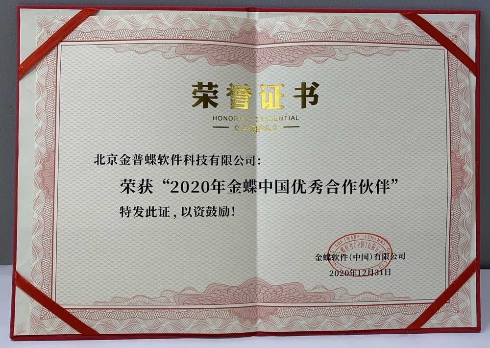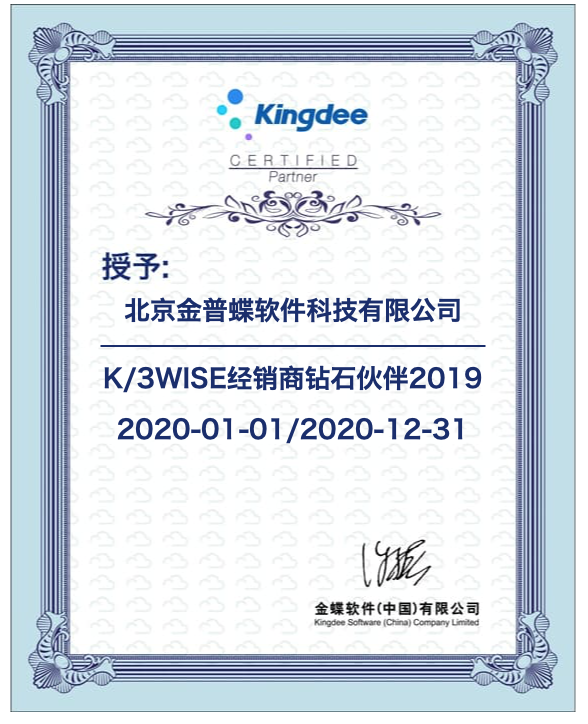 通過(guò)20年的發(fā)展,金普蝶公司從金蝶集團(tuán)全國(guó)數(shù)千家伙伴中脫穎而出,成為:北京地區(qū)金蝶ERP鉆石級(jí)合作伙伴,金蝶集團(tuán)全國(guó)核心合作伙伴。