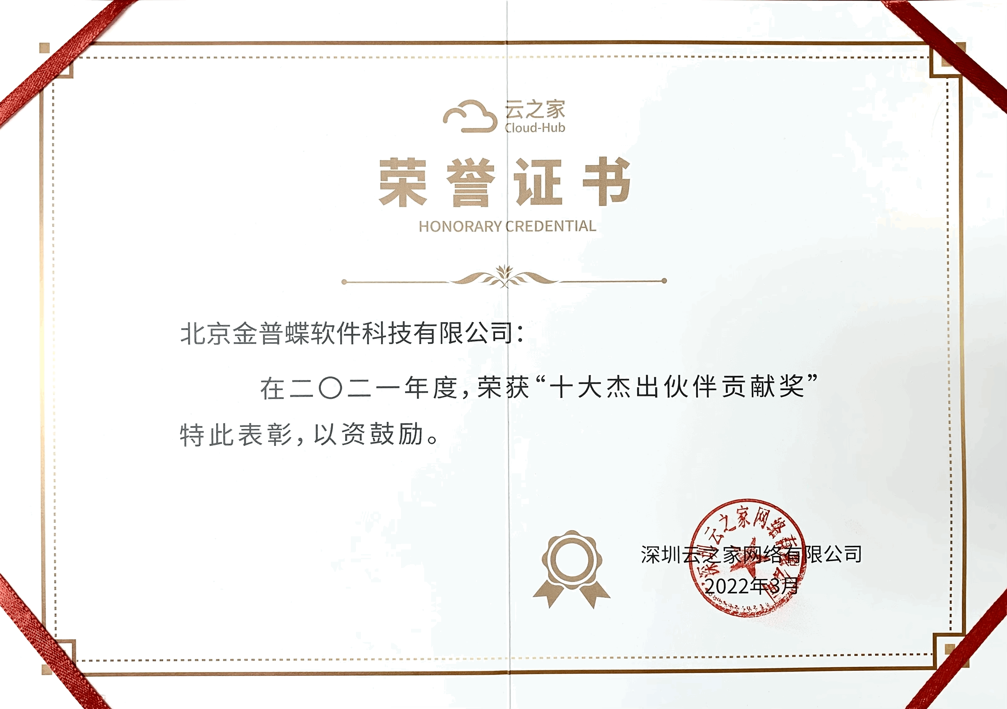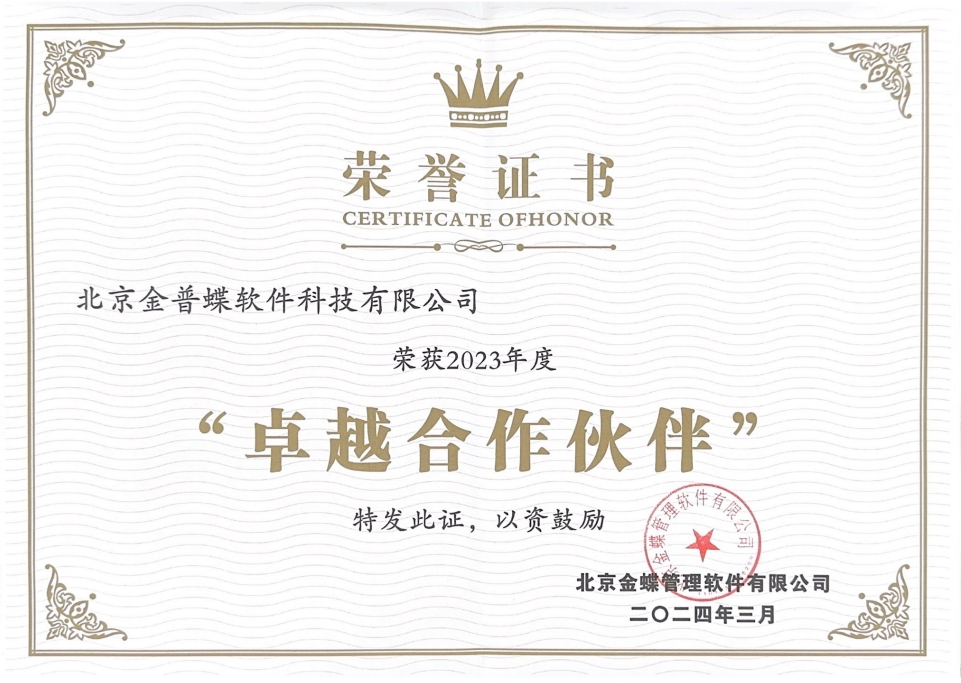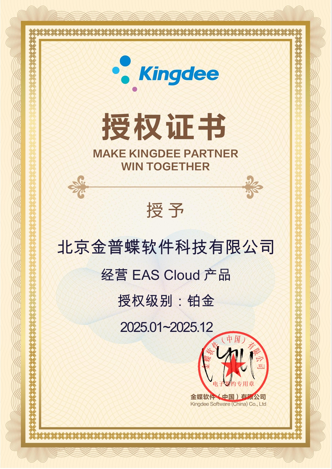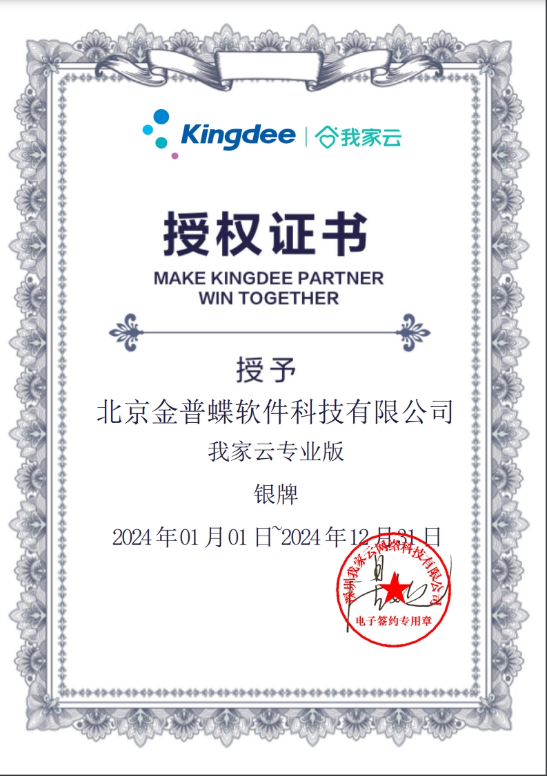 通過(guò)20年的發(fā)展,金普蝶公司從金蝶集團(tuán)全國(guó)數(shù)千家伙伴中脫穎而出,成為:北京地區(qū)金蝶ERP鉆石級(jí)合作伙伴,金蝶集團(tuán)全國(guó)核心合作伙伴。